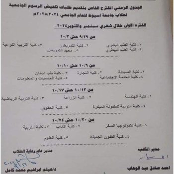 الجدول الزمنى الخاص بتقديم طلبات تخفيض الرسوم الجامعية