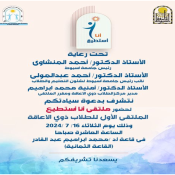 الثلاثاء القادم ملتقى جامعة أسيوط الأول لطلاب ذوى الإعاقة "أنا أستطيع"
