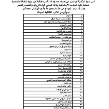 اهداء عدد (198) كتب ثقافية من وزارة الثقافة بالقاهرة لمكتبة كلية الخدمة الاجتماعية