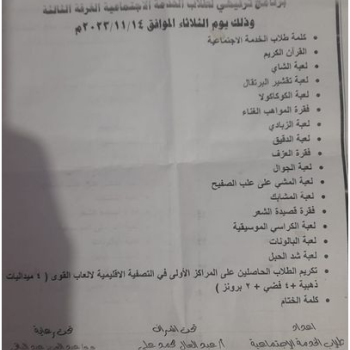 برنامج ترفيهى لطلاب الخدمة الاجتماعية الفرقة الثالثة