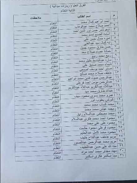 الفرق العليا (زيارات ميدانية) الفرقة الثانية انتظام
