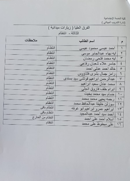الفرق العليا (زيارات ميدانية) الفرقة الثالثة انتظام