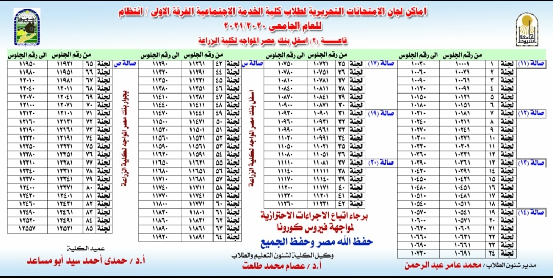 تابع اماكن لجان الامتحانات التحريرية الفصل الدراسى الأول للعام الجامعى ٢٠٢٠/٢٠٢١ 25 فبراير 2021 تابع اماكن لجان الامتحانات التحريرية الفصل الدراسى الأول للعام الجامعى ٢٠٢٠/٢٠٢١