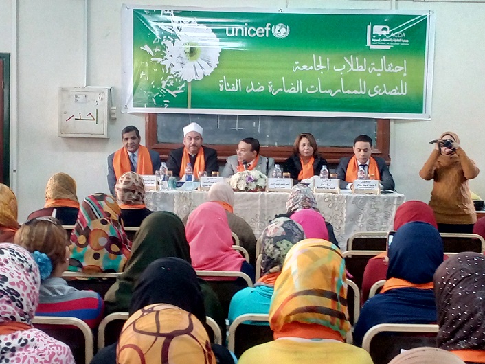إحتفالية الجامعة بعنوان (الممارسات الضارة ضد المرأة) بالتعاون بين مركز البحوث الإجتماعية والتدريب بالكلية وجمعية الطفولة والتنمية باسيوط التابعة لليونسيف وذلك يوم الثلاثاء الموافق 13/12/2016 بدأت من الساعة التاسعة صباحآ حتى الثانية ظهرآ.