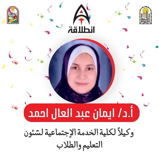 We warmly congratulate Prof. Dr. Iman Abdel Aal Ahmed on the occasion of the issuance of the decision of His Excellency the President of Assiut University to appoint her as Vice Dean of the Faculty of Social Service for Education and Student Affairs for a period of three years, wishing her further success for the good of the college.