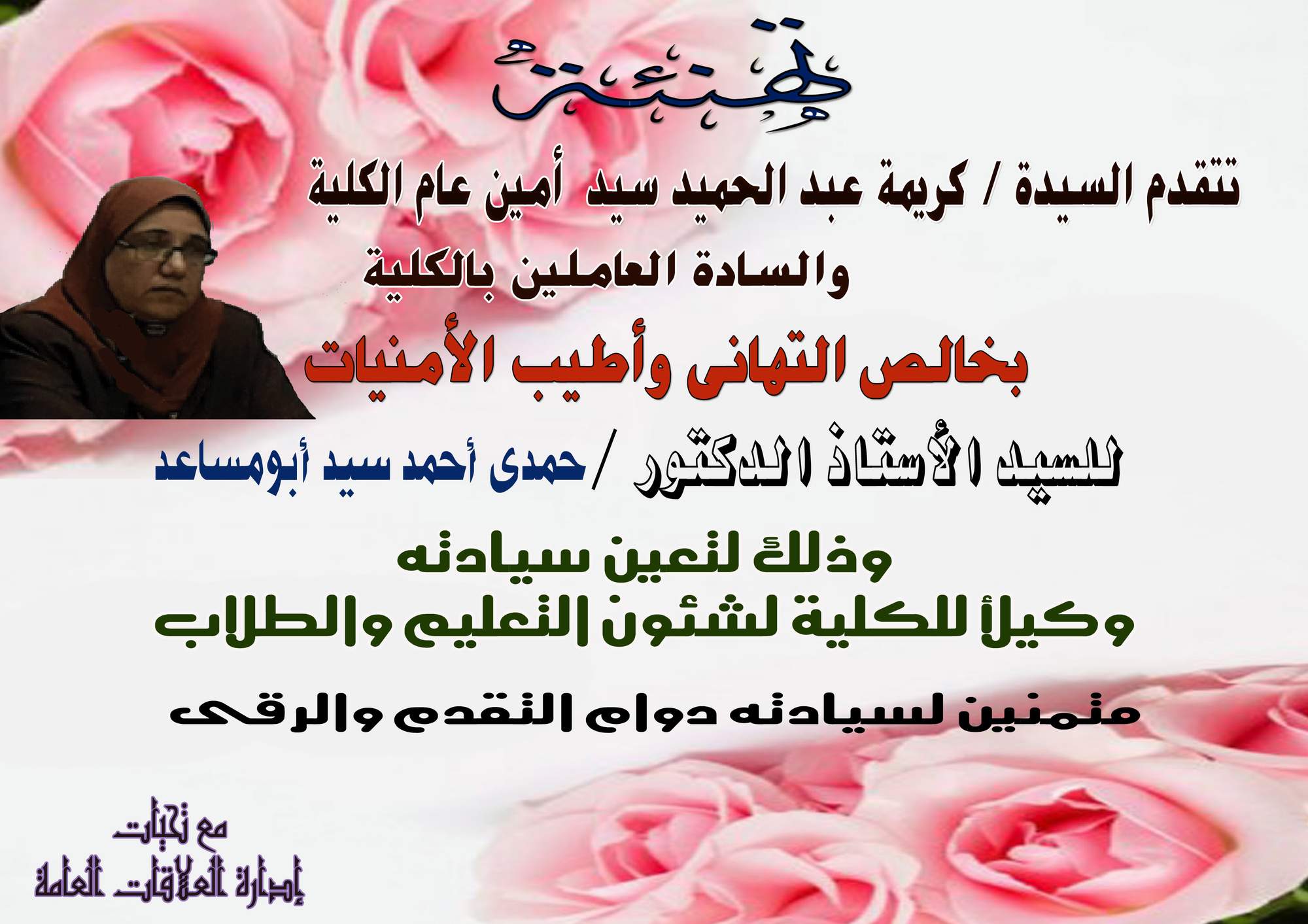Congratulations from Mrs./ General manager of college 7 April 2016 Congratulations from Mrs./ General manager of college