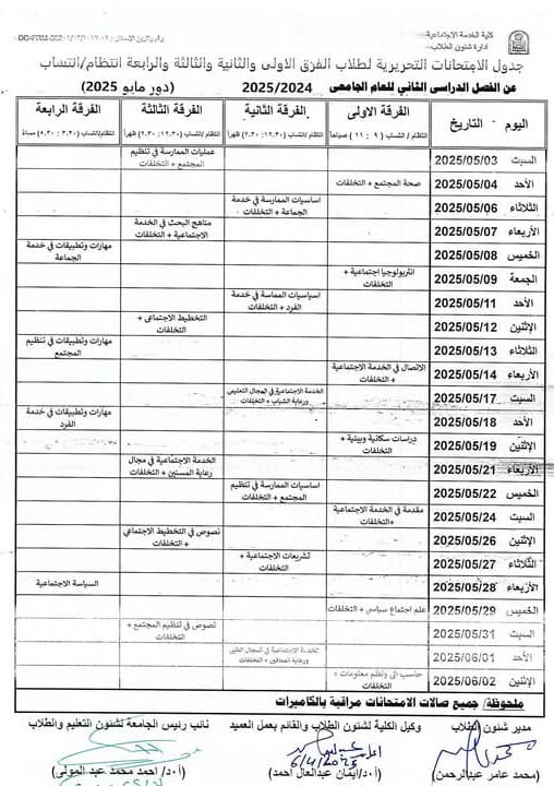 Examination schedule for the second semester of the academic year 2024/2025