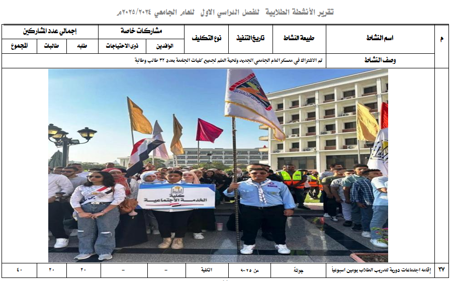 الاشتراك في معسكر العام الجامعي الجديد وتحية العلم