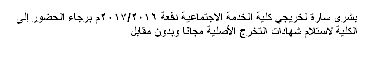 بشرى سارة لخريجى الكلية