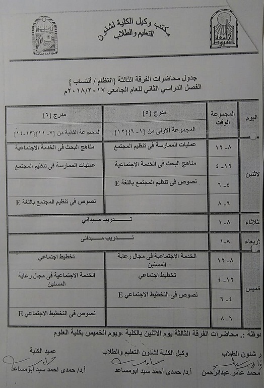 جدول محاضرات الفرقة الثالثة (انتظام/انتساب) للفصل الدراسى الثانى للعام الجامعى2017/2018م 7 فبراير 2018 جدول محاضرات الفرقة الثالثة (انتظام/انتساب) للفصل الدراسى الثانى للعام الجامعى2017/2018م