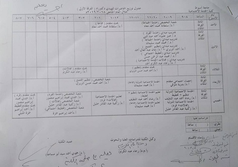 جدول توزيع المحاضرات تمهيدى دكتوراة (الفرقة الاولى) خلال العام الجامعى 2018/2019 18 أكتوبر 2018 جدول توزيع المحاضرات تمهيدى دكتوراة (الفرقة الاولى) خلال العام الجامعى 2018/2019