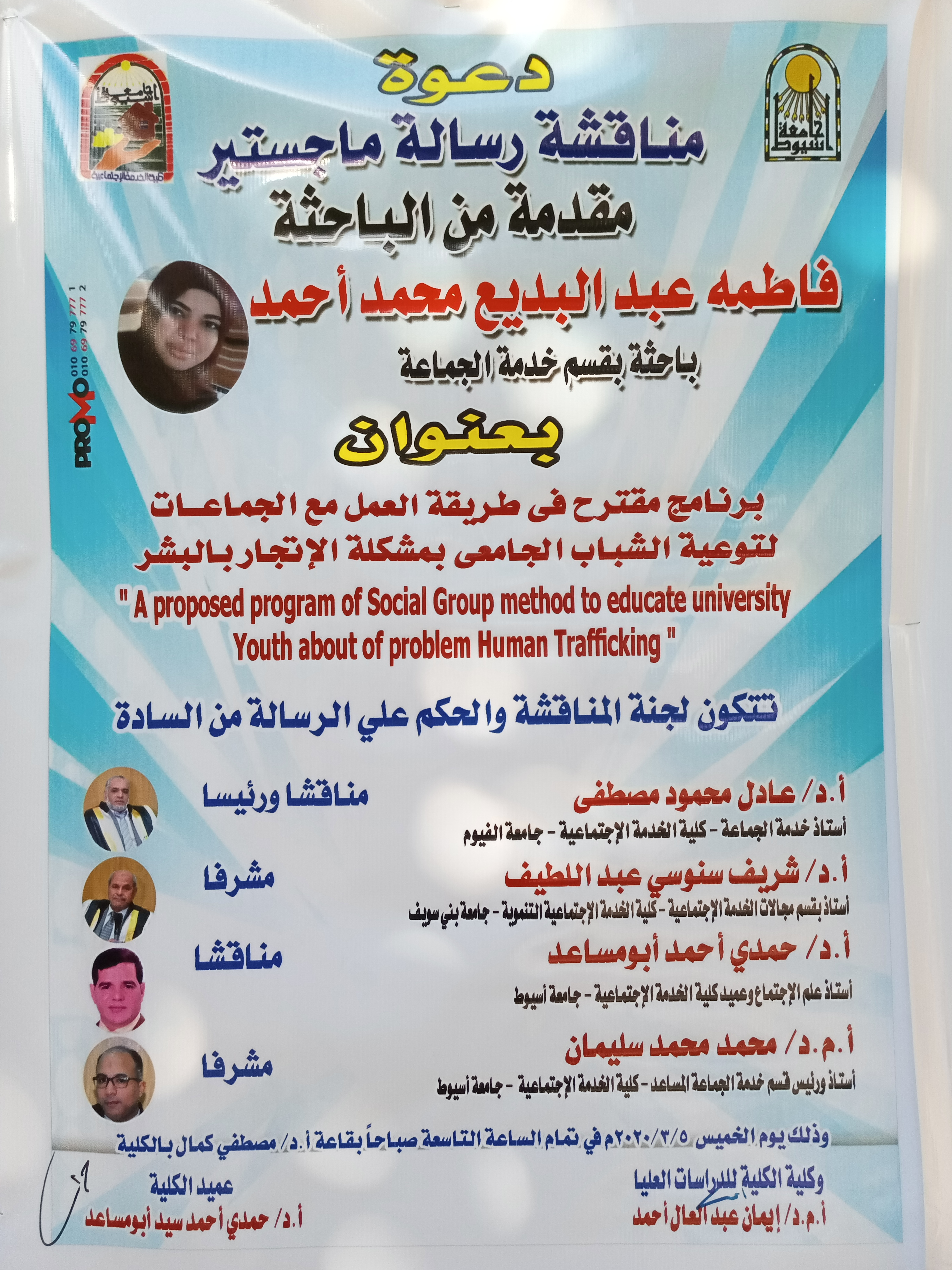 مناقشة رسالة الماجستير المقدمة من الباحثة/ فاطمة عبد البديع محمد 1 مارس 2020 مناقشة رسالة الماجستير المقدمة من الباحثة/ فاطمة عبد البديع محمد