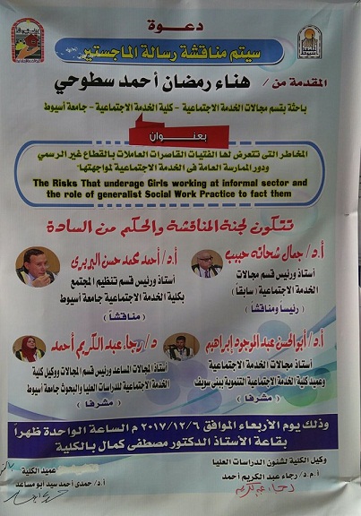 مناقشة رسالة الماجستير المقدمة من / هناء رمضان احمد 5 ديسمبر 2017 مناقشة رسالة الماجستير المقدمة من / هناء رمضان احمد