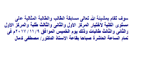 مسابقة الطالب والطالبة المثالية المقامة على مستوى الكلية 7 نوفمبر 2017 مسابقة الطالب والطالبة المثالية المقامة على مستوى الكلية