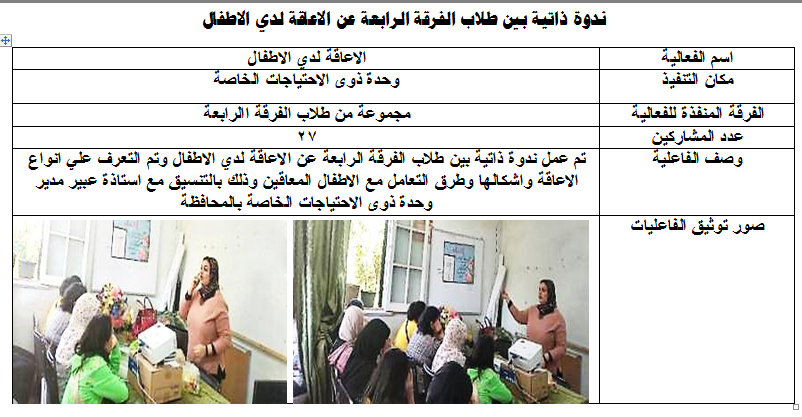 ندوة ذاتية بين طلاب الفرقة الرابعة عن الاعاقة لدي الاطفال