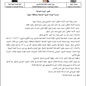 تقربر الزيارة الميدانية لمدرسة الوحدة العربية المشتركة بمحافظة اسيوط
