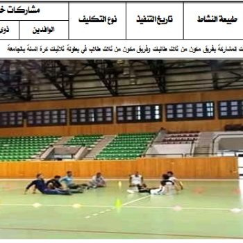 الانشطة الطلابية للفصل الدراسى الاول (تسجيل عددا (10) أسر طلابية في الكلية وتم عمل الاجراءات المطلوبة للتسجيل)