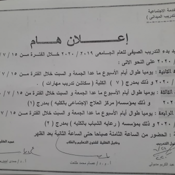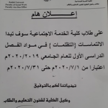 إعلان هام لطلاب كلية الخدمة الاجتماعية