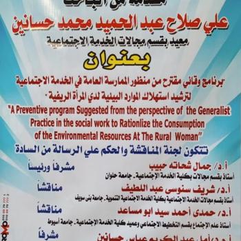 مناقشة رسالة الماجستير المقدمة من الباحث/ على صلاح عبد الحميد