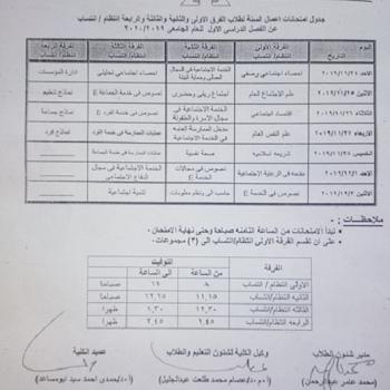 جدول امتحانات اعمال السنة لطلاب الفرق الاولى والثانية والثالثة والرابعة (انتظام/انتساب) عن الفصل الدراسى الاول للعام الجامعى 2019/2020