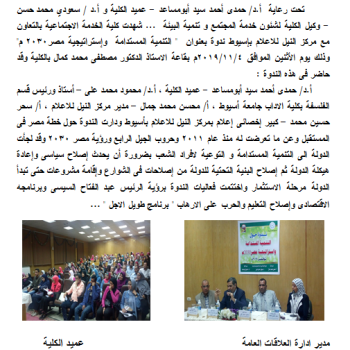 تقرير عن الندوة حول " التنمية المستدامة و استراتيجية مصر 2030 "