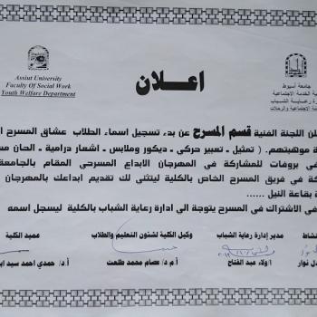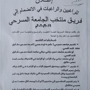 اعلان للراغبين والراغبات فى الانضمام الى فريق منتخب الجامعه المسرحى