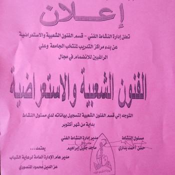 اعلان للطلاب الراغبين فى الانضمام فى مجال الفنون الشعبية والاستعراضية