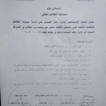 اعلان هام (مسابقة الطالب المثالى)