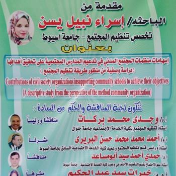 مناقشة رسالة الماجستير المقدمة من الباحثه/ اسراء نبيل يسن