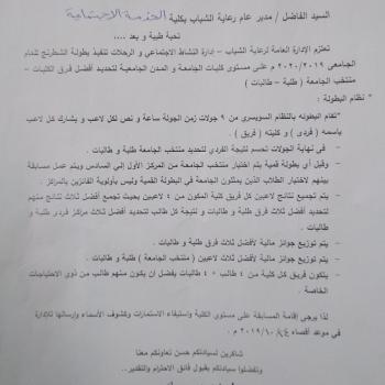 مسابقة الطالب والطالبة المثالييين على مستوى كليات الجامعة