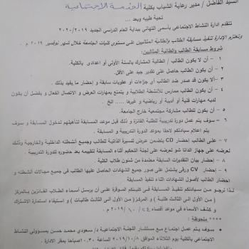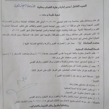 اعلان عن تنظيم المسابقة الثقافية الكبرى فى المجالات الادبية والثقافية بين طلبة وطالبات كليات الجامعة