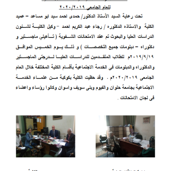 تقرير عن امتحانات الدراسات العليا كلية الخدمة الأجتماعية للعام الجامعى 2019/2020