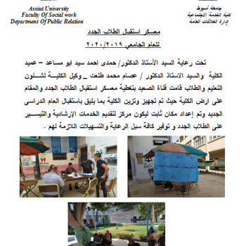معسكر استقبال الطلاب الجدد للعام الجامعي 2019/2020