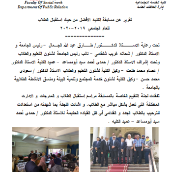 تقرير عن مسابقة الكليه الافضل من حيث استقبال الطلاب للعام الجامعي 2019-2020