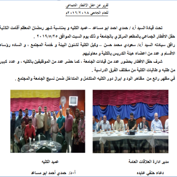 تقرير عن حفل الافطار الجماعى للعام الجامعى 2018/2019