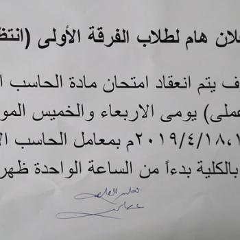 اعلان هام لطلاب الفرقة الاولى انتظام