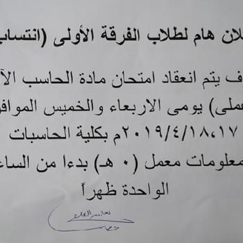 اعلان هام لطلاب الفرقة الاولى انتساب
