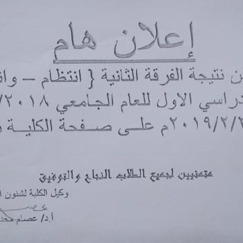 نتيجة الفرقة الثانية انتساب الفصل الدراسى الاول للعام الجامعى 2018/2019