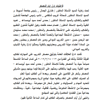 اليوم الاول لمعسكر التدريب على المهارات لطلاب الفرقة الثالثة