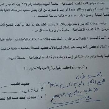 بيان من أعضاء مجلس كلية الخدمة الاجتماعية