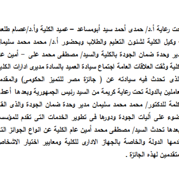 تقرير مناقشة رسالة الماجستير الخاصة بالدارسة/ نورا صابر فرج