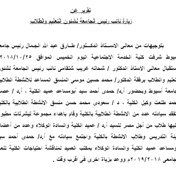 تقرير عن زيارة نائب رئيس الجامعة لشئون التعليم والطلاب