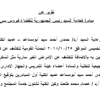 تقرير عن مبادرة فخامة السيد رئيس الجمهورية للقضاء على فيروس سى