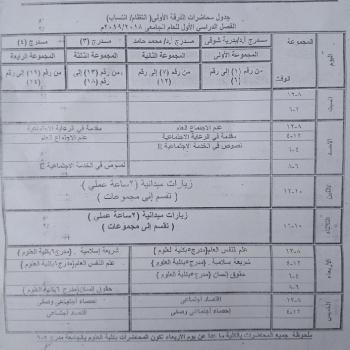 جدول محاضرات الفرقة الاولى (انتظام/انتساب) الفصل الدراسى الاول للعام الجامعى 2018/2019
