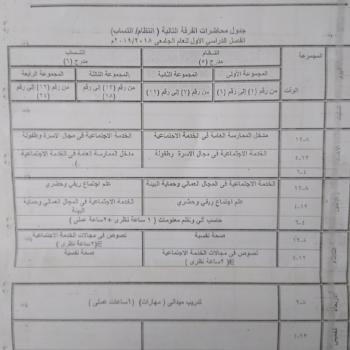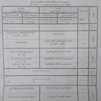 جدول محاضرات الفرقة الثالثة (انتظام/انتساب) الفصل الدراسى الاول للعام الجامعى 2018/2019