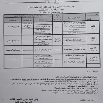 جدول الامتحانات التحريرية عن الدور الثانى (دور نوفمبر 2018) لطلاب الفرقة الرابعة