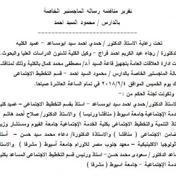 تقرير مناقشه رساله الماجستير الخاصة بالدارس / محمود السيد احمد