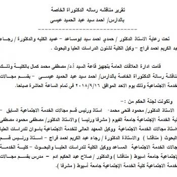 تقرير مناقشه رساله الدكتوراة الخاصة بالدارس/ احمد سيد عبد الحميد عيسى