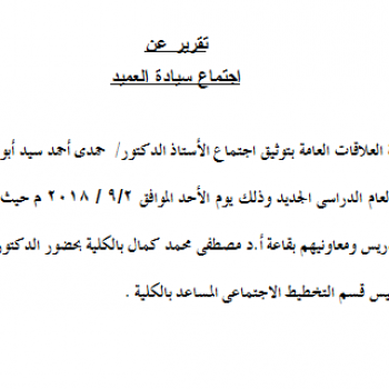 تقرير عن اجتماع سيادة العميد