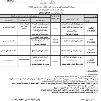 جدول الامتحانات التحريرية عن الدور الثانى (دور نوفمبر 2018)